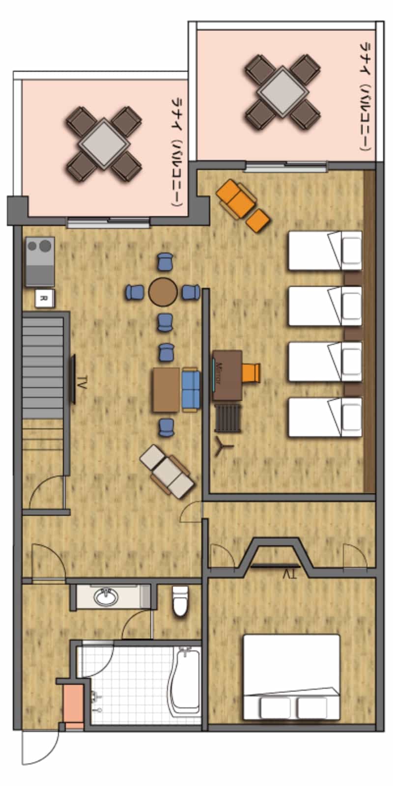| 設備 | 洗浄機付きトイレ/バスタブ付き/薄型テレビ/冷蔵庫/エアコン(冷暖房)/Wi-Fi(無線LAN)/ヘアドライヤー/スタンド照明/ケトル/スリッパ/バルコニー |