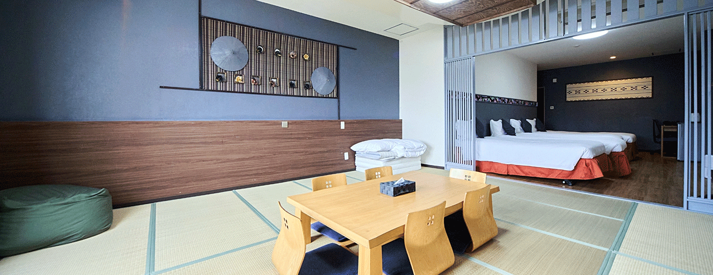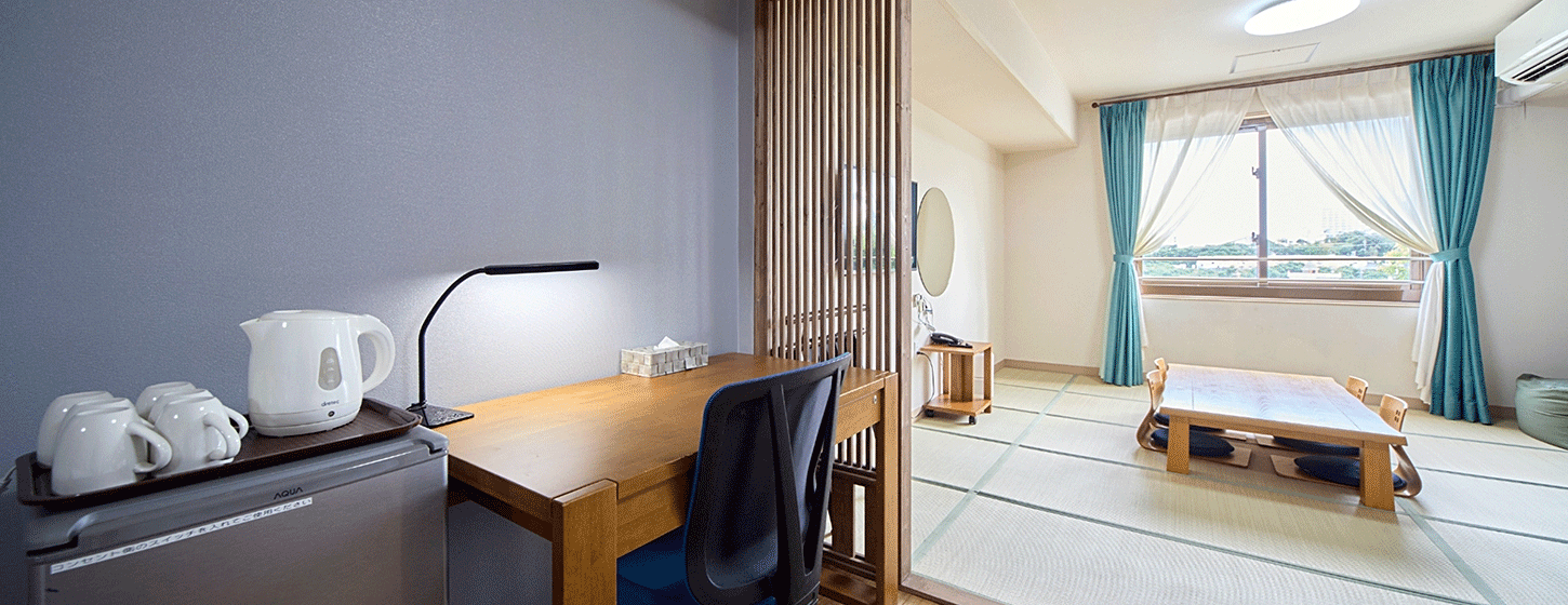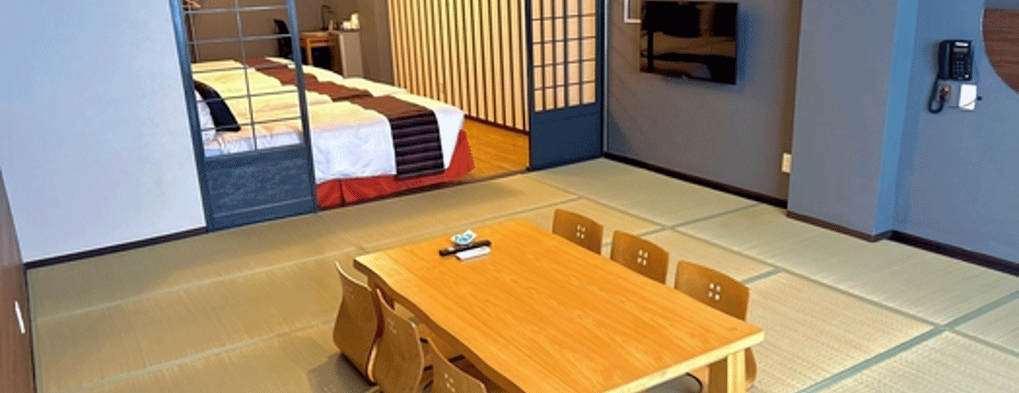 広々とした空間に、畳の落ち着きと洋室の快適さをあわせ持つ当ホテル自慢のお部屋です。