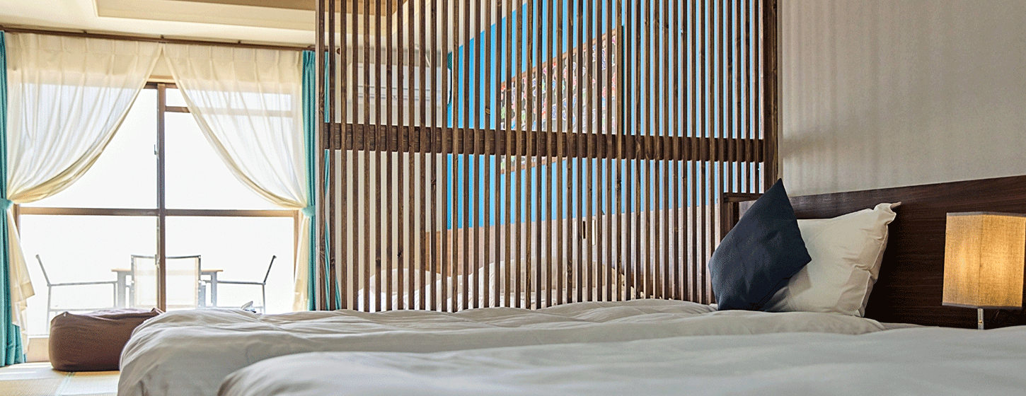 ベッドと座敷の両方を楽しめる贅沢なレイアウトで、心ゆくまでリラックスを。